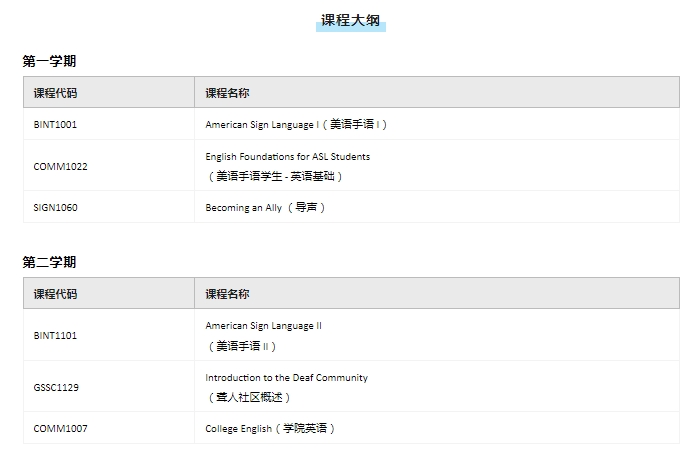 美语手语和聋人研究专业向聋人和非聋人学生开放,并提供以下密集学习内容: