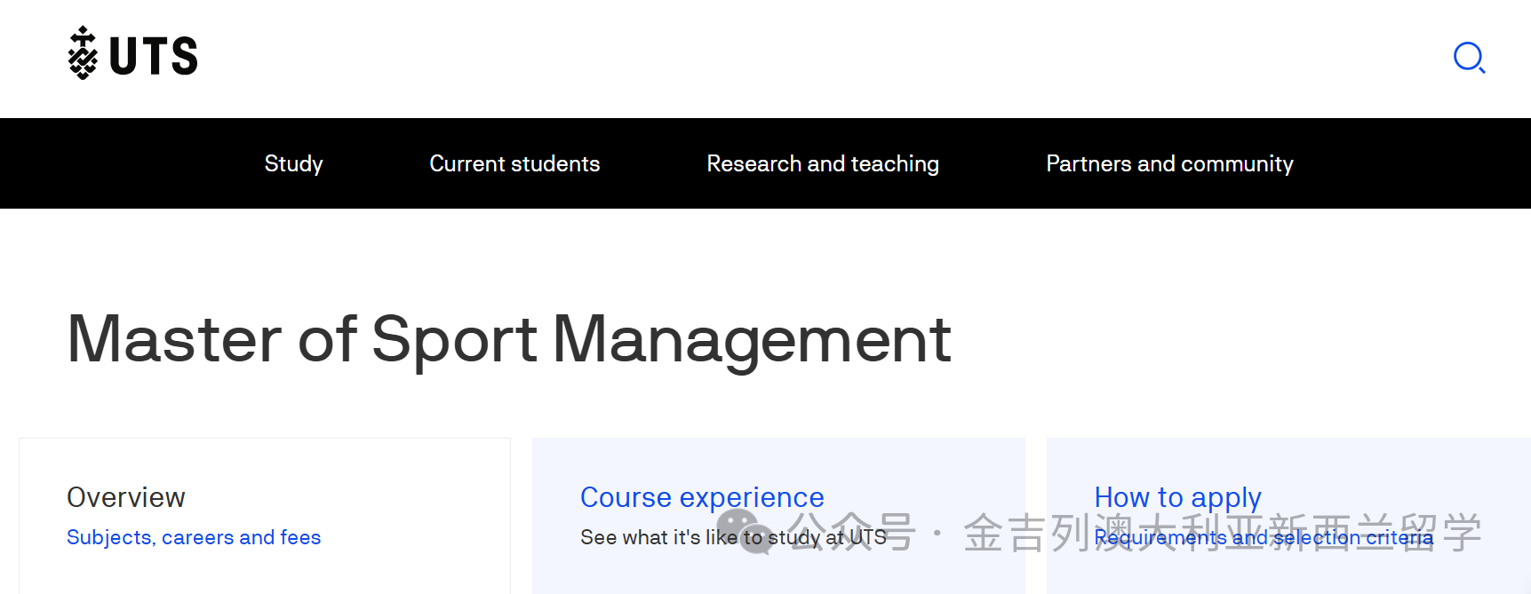 Master of Sport Management体育管理硕士悉尼科技大学的体育专业 部分 课程与澳大利亚体育赛事管理中心合作开设。奥林匹克实习项目由悉尼2000年奥运会组委会及其他相关体育组织共同参与。大学的一些教授曾参与悉尼2000年奥运会的筹备和顾问工作,学生们可以通过多种机会接触并参与奥运会的各项组织工作。
