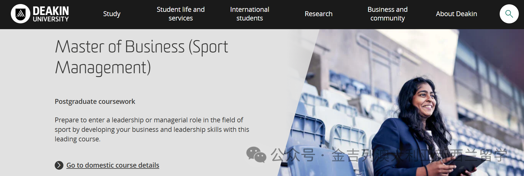 格里菲斯大学: Master of Business (Sport Management) 商业硕士(体育管理) 维多利亚大学:**Master of Sport Business运动商务硕士