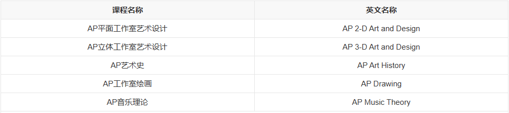 AP艺术类课程共有5门,涵盖美术、音乐等领域,以下为具体信息。