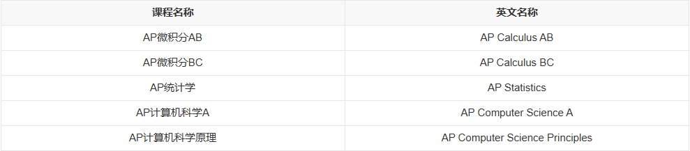 AP 数学与计算机科学类 课程共有5门,其中数学5门,计算机2门,以下为具体信息。