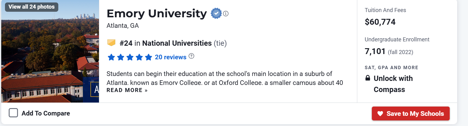 学校拥有多个学院,包括埃默里学院、牛津学院、法学院、医学院等。其中,埃默里大学医学院是美国顶尖的医学院之一,尤其以其在传染病和疫苗研究方面的贡献而闻名。学校还提供丰富的本科学科和专业,强调小班制精英教育,师生比例相对较低,有利于学生与教师之间的互动。