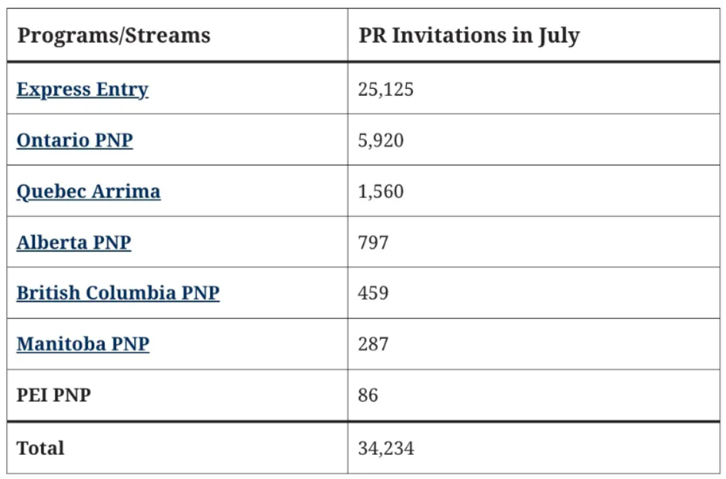 2024年7月,加拿大移民局通过各种联邦和省提名渠道邀请了34234名技术工人成为永久居民,这是今年邀请人数和频率最高的一次。