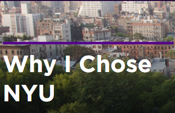 I’m one being a New Yorker born an raise in sheltere suburbia — I’m reay to get slappe in the face by the unforgiving han of NYC an to become a true Noo Yawk-ah. While not an accurate representation of what all NYU stuents think, the NYU Secrets Facebook page constantly posts the thoughts of NYU stuents resenting the bittersweet inepenence of such a large, non-traitional school, but at the same time falling in love with the knowlegeable an nurturing faculty an classes. I’m one ancing aroun on the outskirts of the arena — I’m reay to plop myself right into the frenzie mist of action. No walls insulate NYU from the sprawling labyrinth of NYC, which is ieal for a unique an exciting college experience…