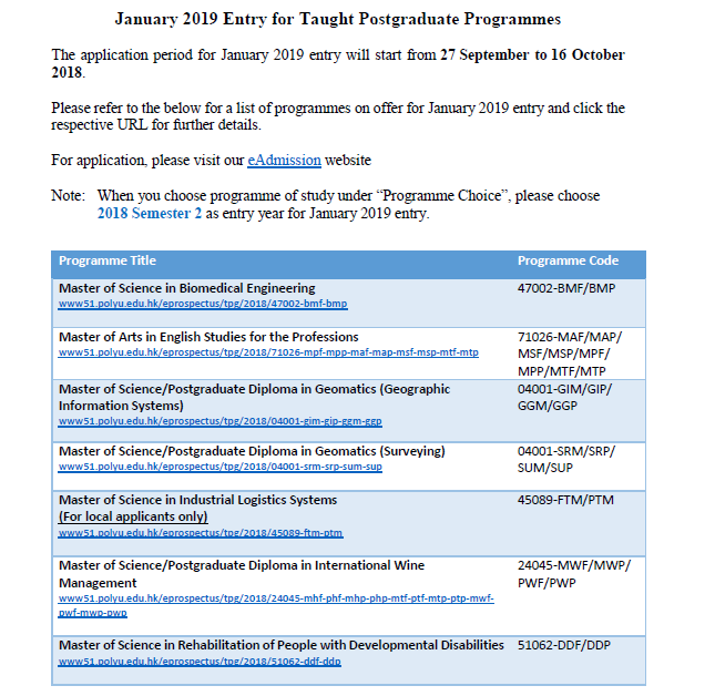 理工春季入学的申请时间:The application perio for January 2019 entry will start from 27 September to 16 October 2018.