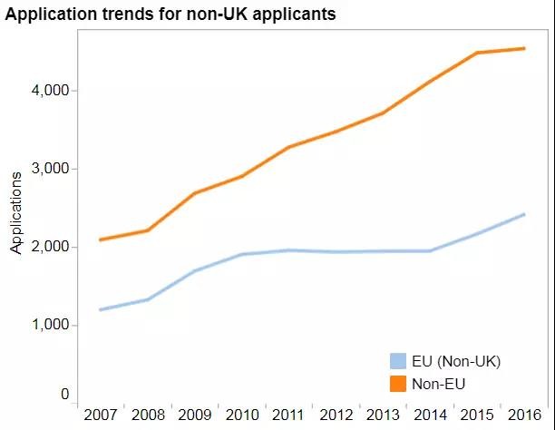 牛津非欧盟申请人数变化趋势