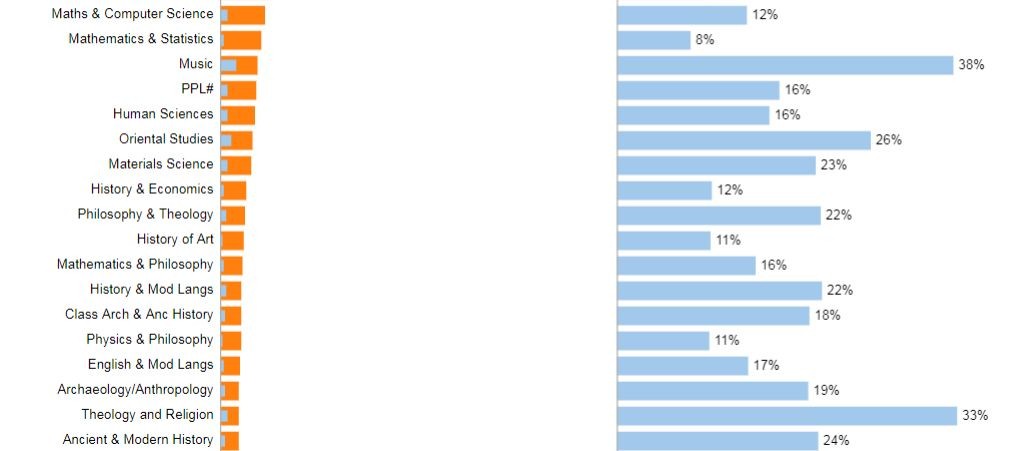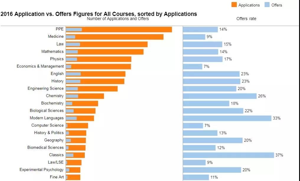 牛津也有录取率 30% 以上的专业,