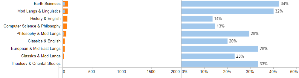 包括 现代语言、古典文学、音乐、神学与宗教、地球科学、现代语言与语言学、神学与东方研究。
