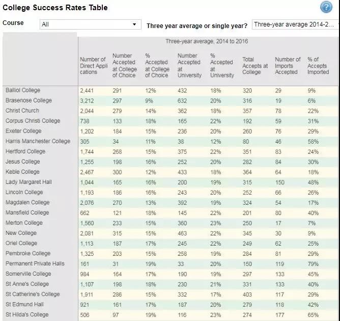 2014-2016 牛津各学院申请人数统计