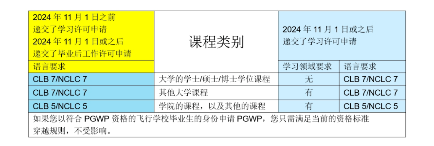 3.如果是11月1日之前递交的学习许可,那么在11月1日之后申请毕业后工作许可则需要满足相应的语言条件。