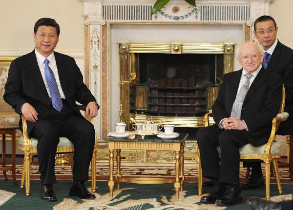林超伦博士(右一)与习近平主席及爱尔兰总统希金斯
