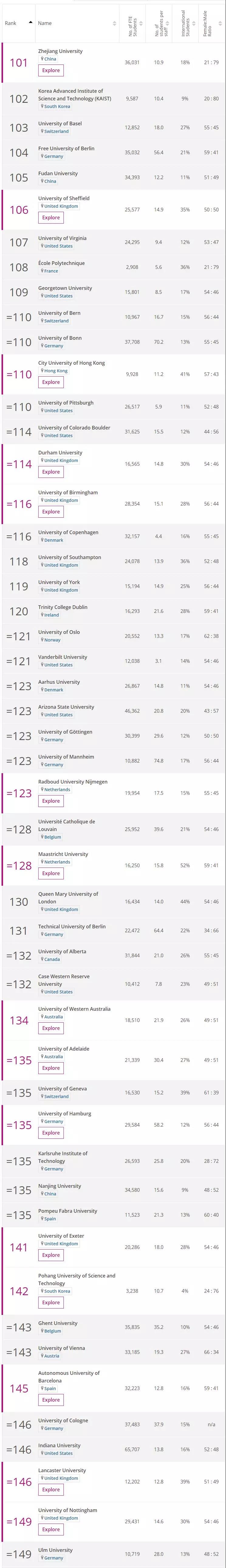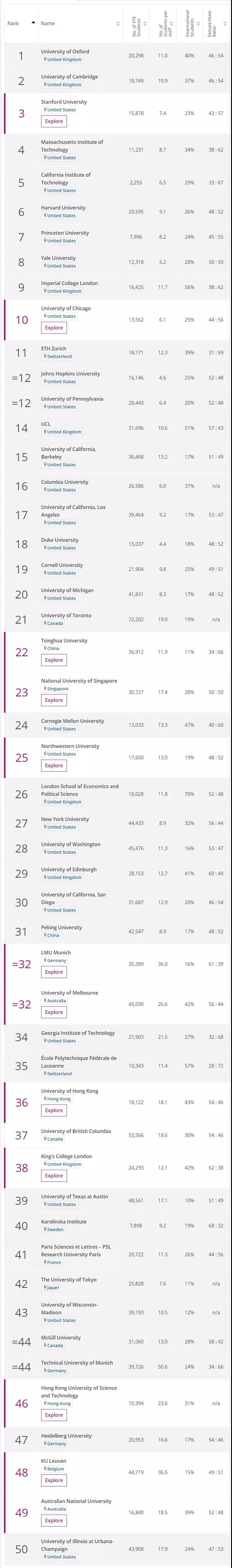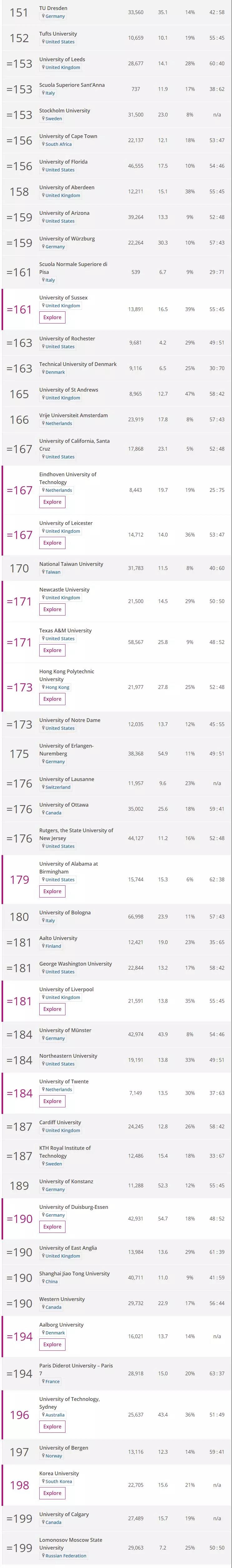 下面就一起来看看世界排名TOP200的院校吧!