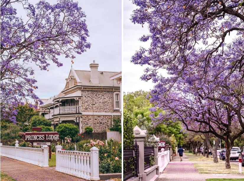 最早的蓝花楹大量种植在阿德莱德的Mitcham和 Frewville,这些 历史街区 至今仍保留着大片成行的蓝花楹,每到花季,仿佛穿越时光,诉说着百年前的浪漫故事。