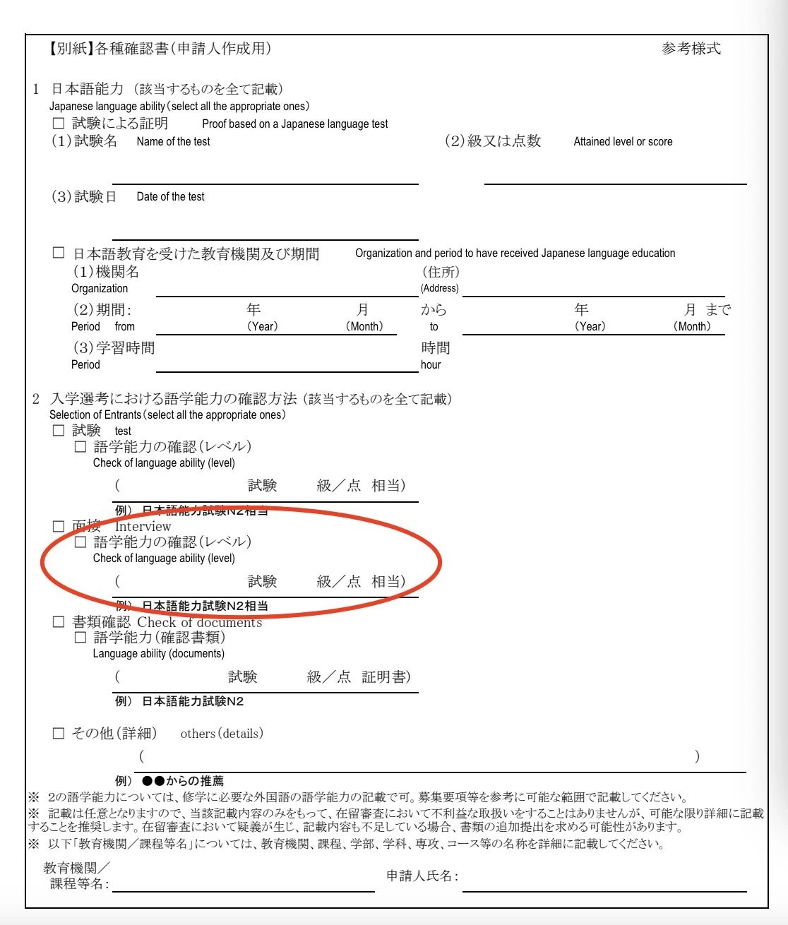 如果你是在正规的语培机构学的日语,并且满足了150小时的日语学习证明,就可以开具这个证明,申请语言学校。入管局多数情况下不会直接调查,而是根据语言学校提交的《日语能力确认书》来审核,然后对日语可能不太好的同学电调。