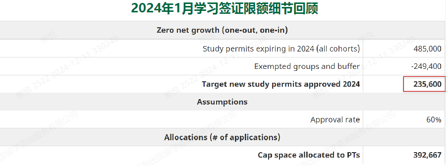 部分留学生,如中小学生、硕士或博士研究生,不受上限限制。IRCC从 2024 年获批学习许可的目标数量中扣除了这些群体的预计数量(根据 2023 年的数据为 140,000 人)。因此,受限群体在2024年获批学习许可的目标人数约为 236,000 人,换算成需要分配的学习许可申请约为 393,000 份。