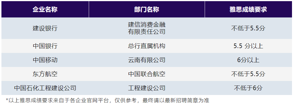 出于国际化业务发展的需求,不少含金量高的国企岗位也开始要求雅思成绩。例如在中国建设银行总部2025年度校园招聘公告中,要求应聘者的六级成绩不低于425分,雅思成绩不低于6.5分等。