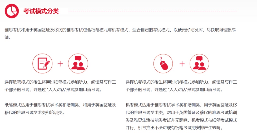 雅思考试包含纸笔模式与机考模式,考生可自由选择适合自己的考试模式。