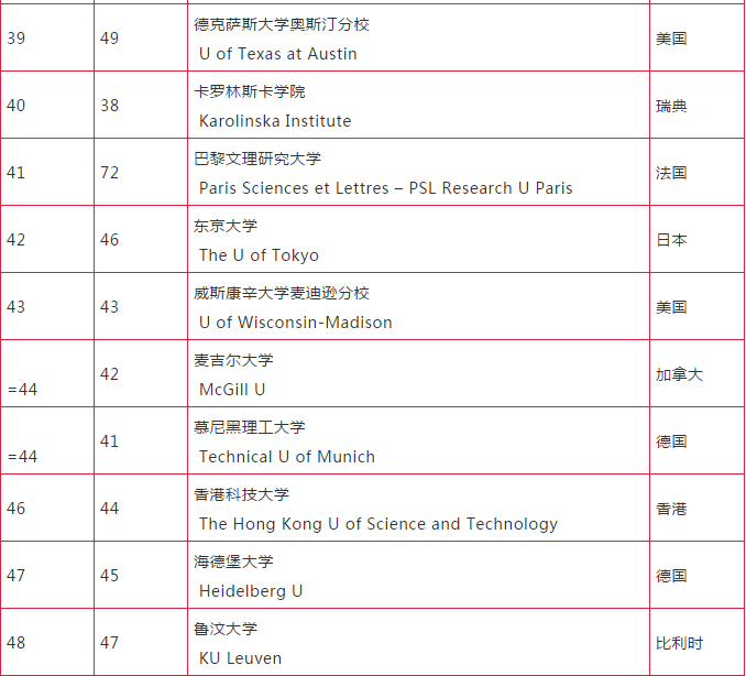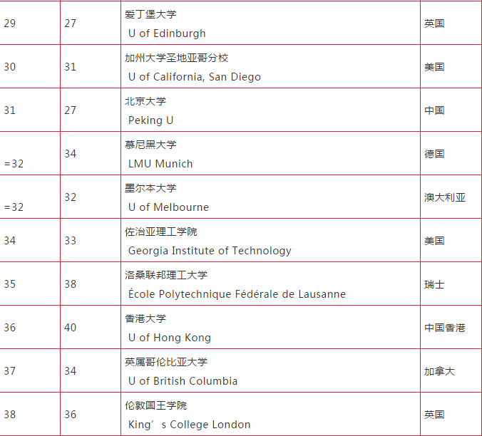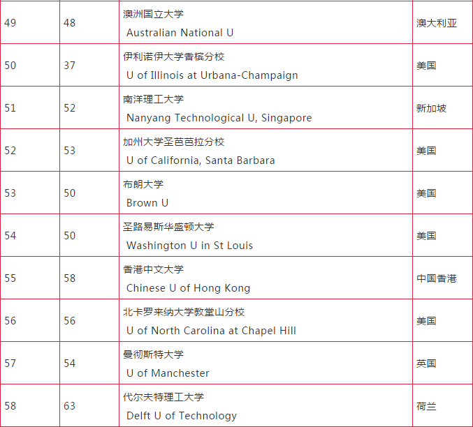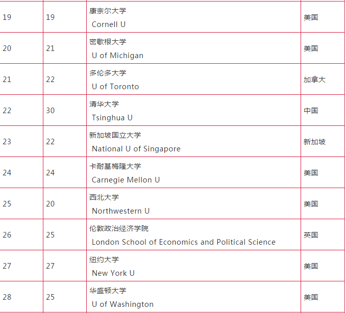 中国大学方面,清华大学在全球排名中首次超越北京大学,同时超越新加坡国立大学成为亚洲高校之首。