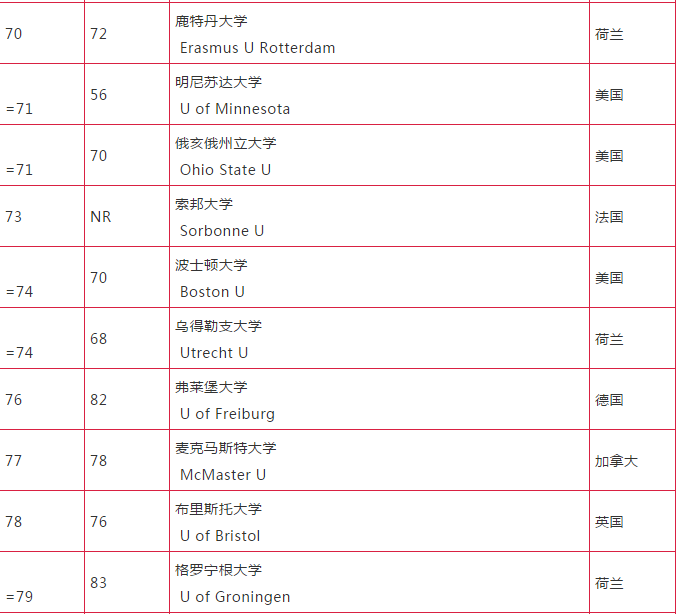 中国大陆同时也是全球高校入围数量第四的国家,从去年的63所高校增加到72所高校。