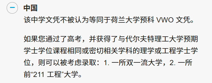 另外,成绩不那么理想/语言较薄弱的同学也可以选择去荷兰读本科预科,要求稍微低一些,一般要求:高中毕业,会考通过,需要参加高考(无分数要求)。
