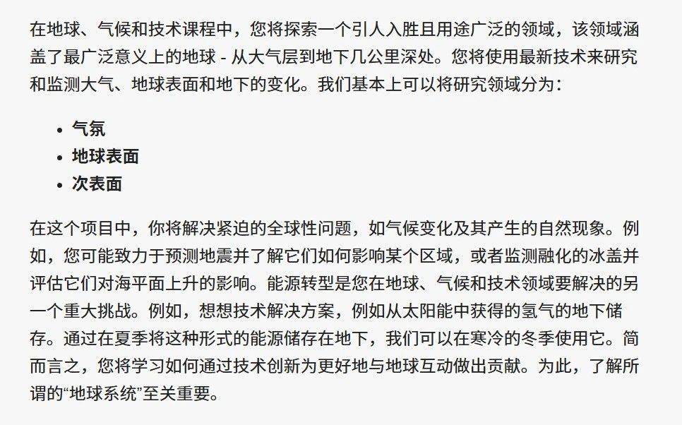 学习内容:如何设计一架可以使用氢气飞行的飞机?如何让风力涡轮机在海上的浮动平台上工作?有没有简单的解决方案来解决太空碎片?