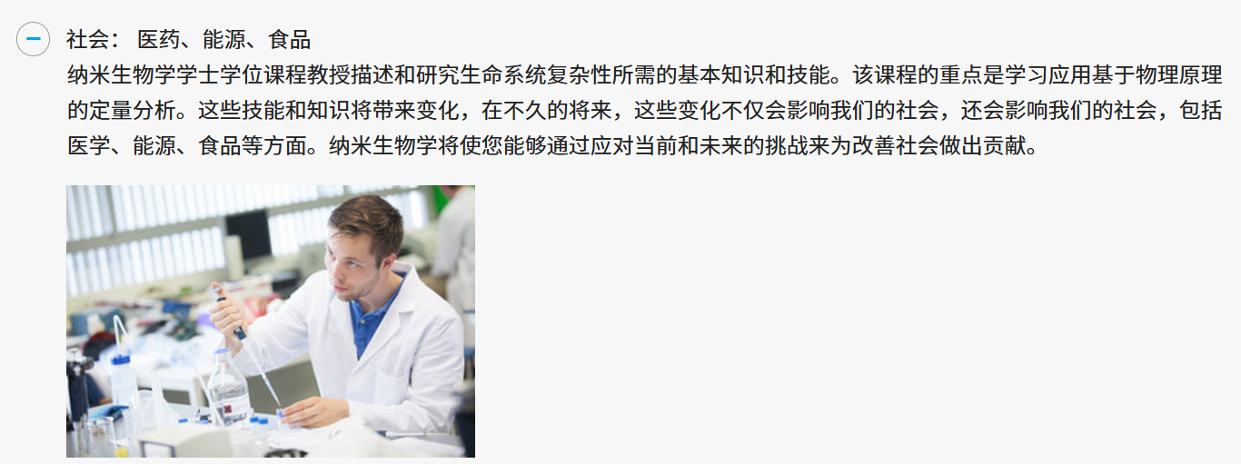 纳米生物学是研究最小尺度生命系统复杂性的学科,是代尔夫特理工大学和鹿特丹伊拉斯谟大学提供的联合项目。