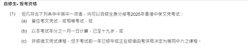 但凡符合下列条件中其中一项,都可以自修生身份参加2025年DSE考试: