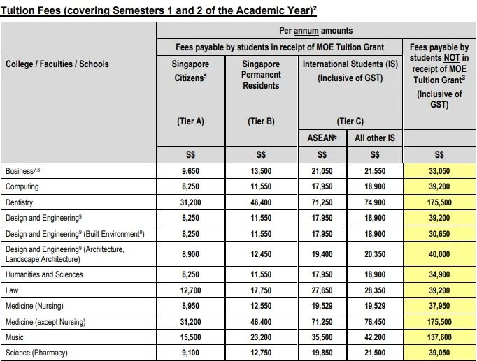 新加坡国立大学的本科学费大约在30,650- 175,500新元/年