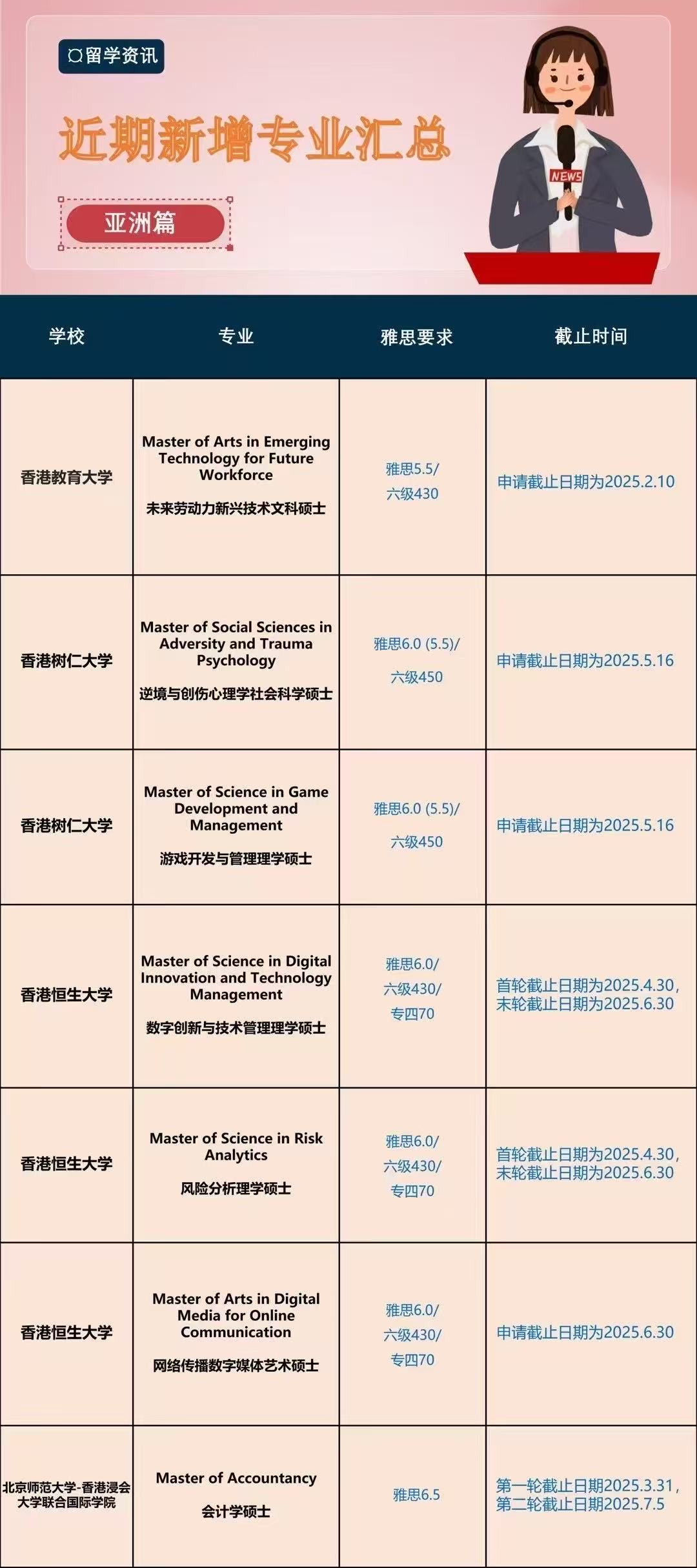 此次新增专业虽然院校排名相对没有八大靠前,但也是国内可认证院校。