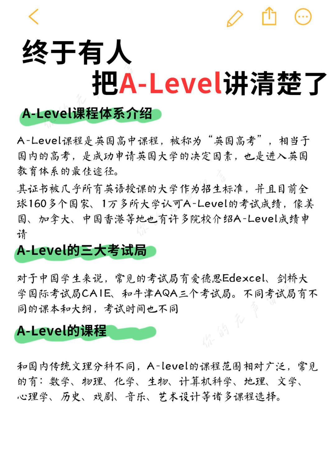 ALevel就是英国的高中课程,属于英国全民体系,和高考相当。ALevel的成绩可以申请英国的所有大学,也可以申请美、加、澳、澳、新、香港等地的部分大学。