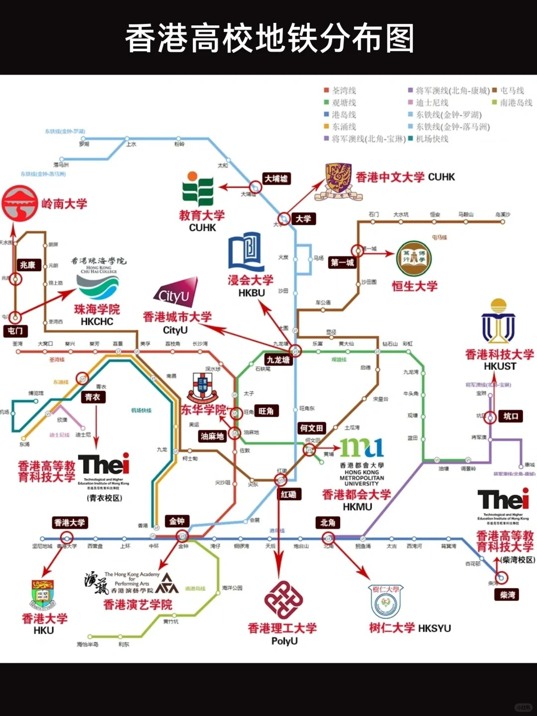 同学们都很关心香港各高校在香港哪里呢,以下为香港各高校的地铁分布图