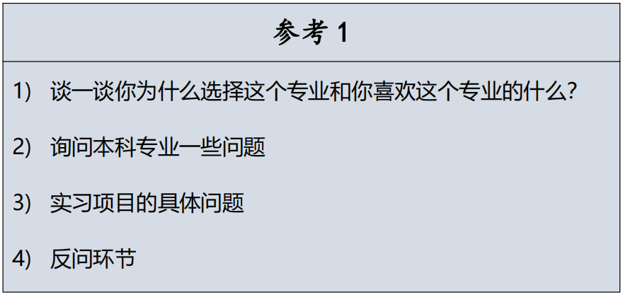 和学院或项目相关的问题。例如为什么选这个专业?对这个专业有多少了解?