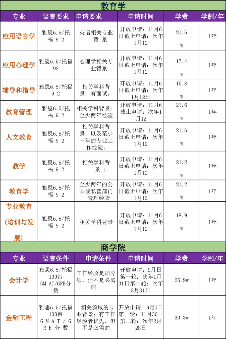 语言要求:雅思6.5+(部分专业可降低至6.0),托福100+(部分专业可降低至85)。