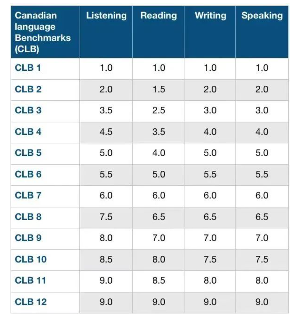 相当于IELTS 阅读 4-5 分,其余模块各 5 分; 相当于CELPIP 每个模块各 5 分。