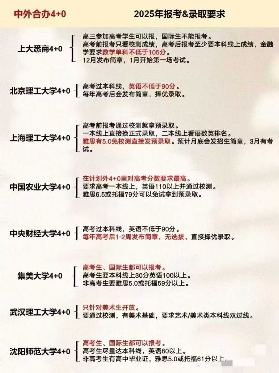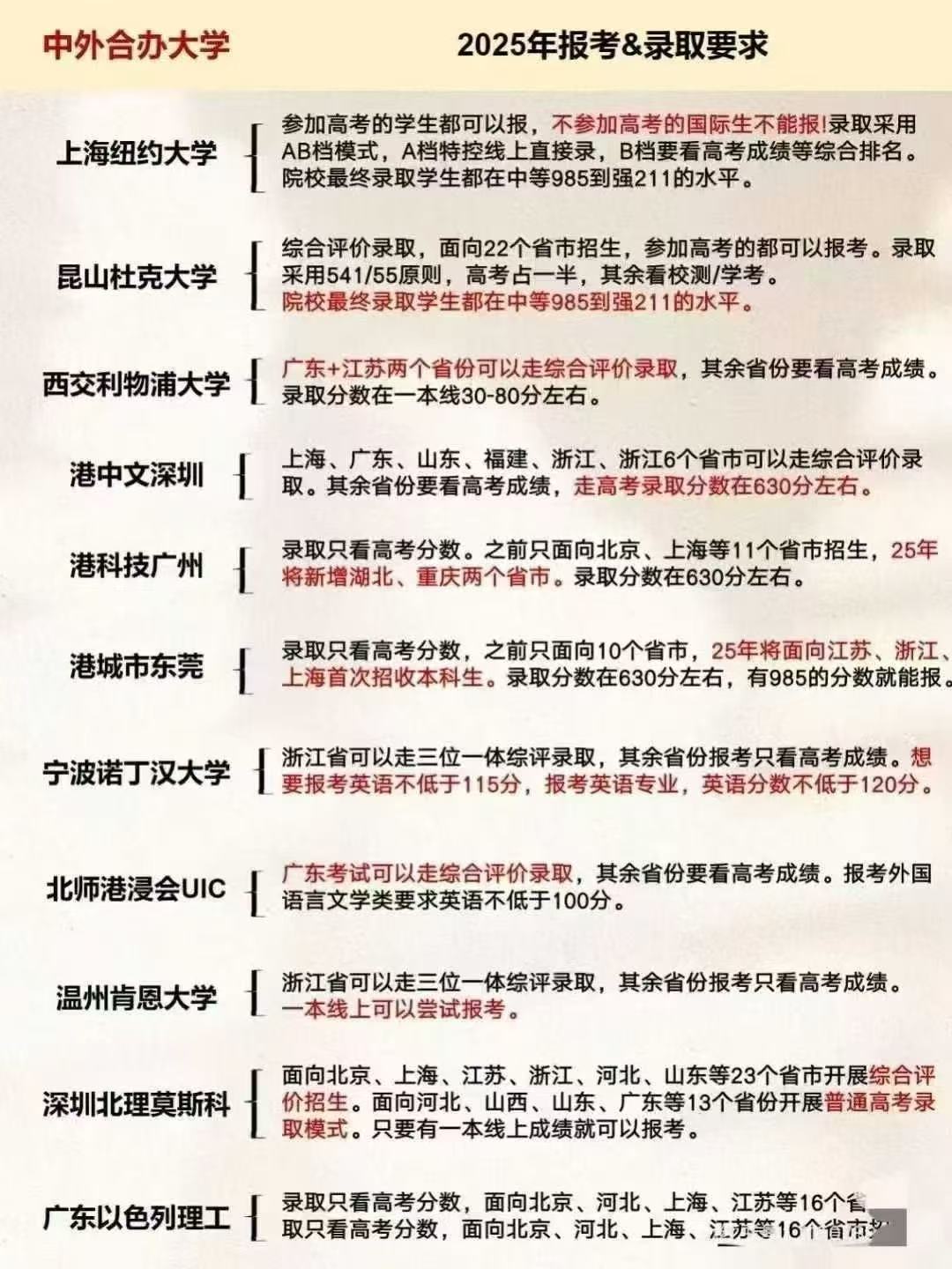 > 中外合作办学2025年录取要求汇总
