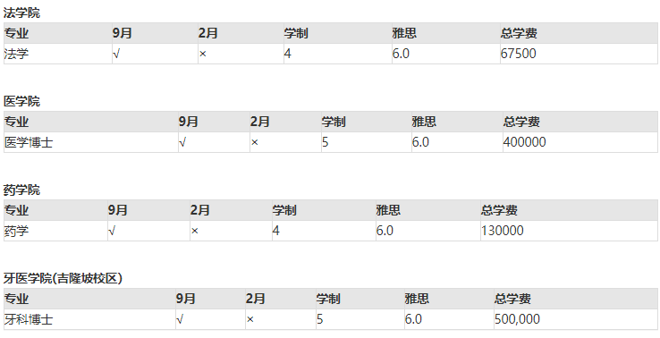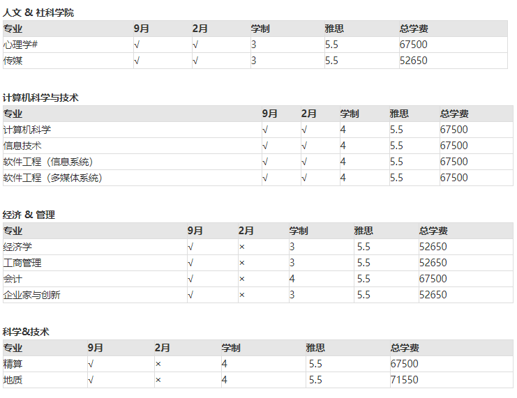 接受无语言成绩申请(传媒和心理学专业除外)。