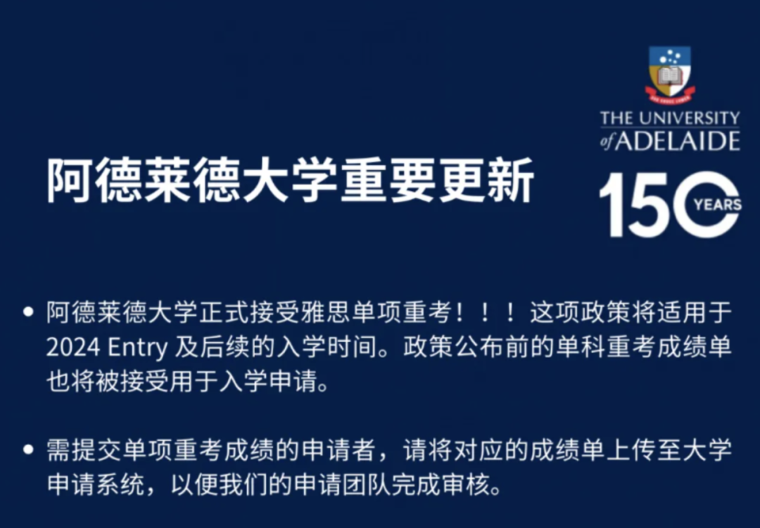 新晋官宣:接受雅思单项重考!本科/研究生直录:雅思6.5(单项≥6.0)