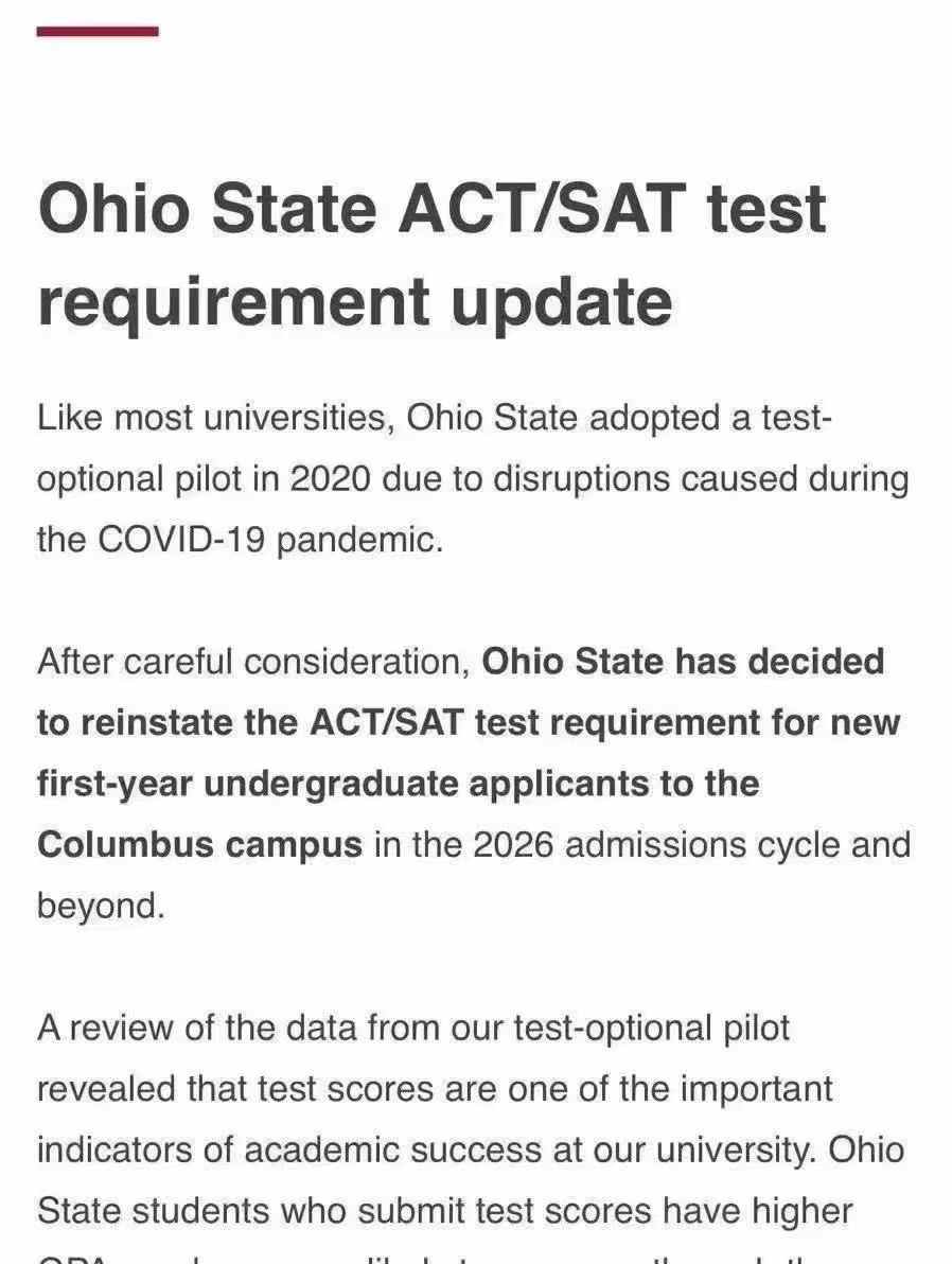 美本前50的俄亥俄州立大学恢复标化ACT SAT考试要求