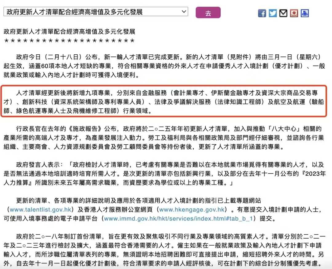 港硕新风口! 港府公布9大紧缺专业人才