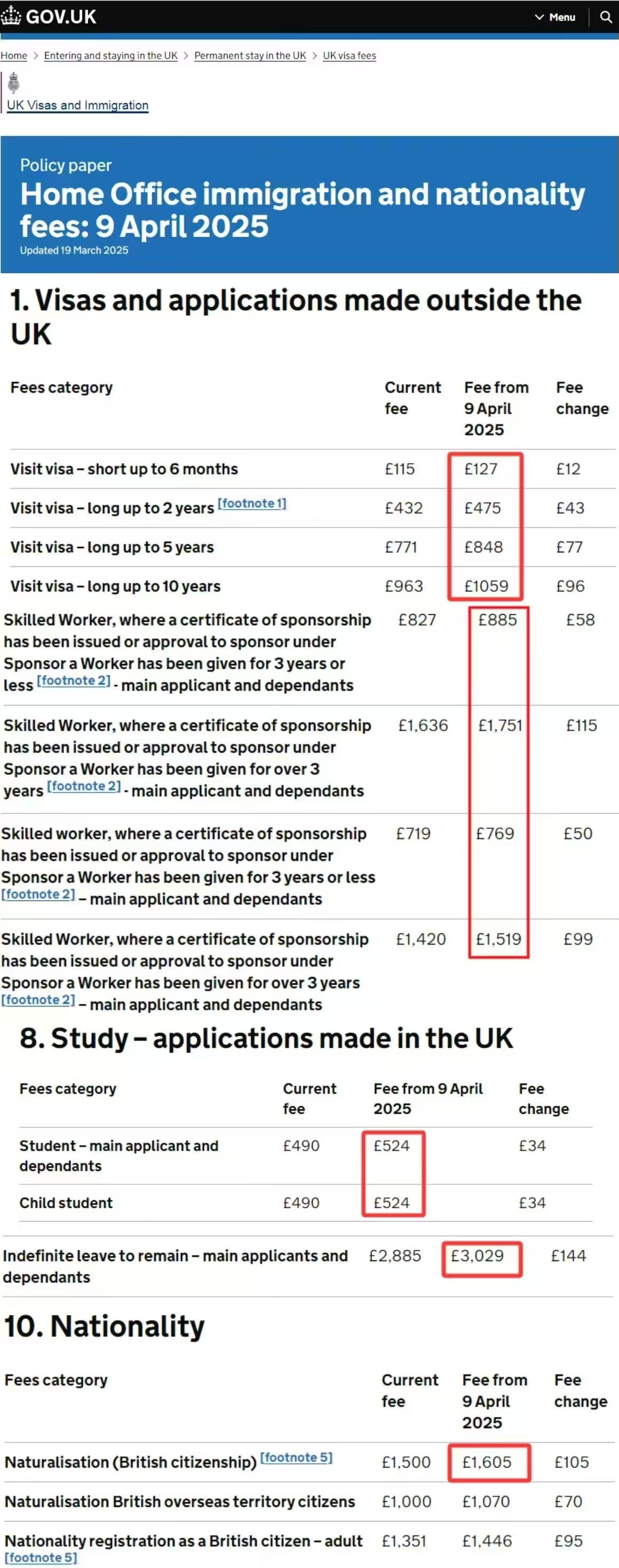 英国政府官宣,自2025年4月9日起,几乎所有签证类型申请费将上调,包括学生签、工签和旅游签等。