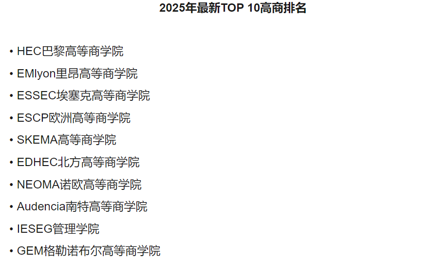 2025年最新TOP 30高商排名