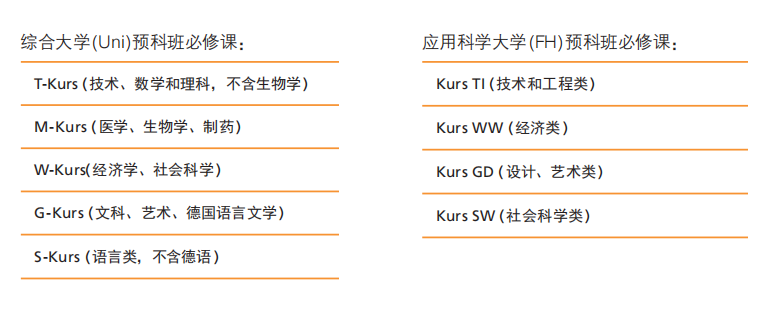 “外国留学生大学预科”(Studienkolleg für ausländischeStudierende),顾名思义,是德国大学为不能申请直接入学的非欧盟国家的外国留学生开设的专业补习班。大学预科的学生是作为该大学的学生注册的,可享受相关待遇。学生经过一年的学习,通过“外国留学生大学入学资格鉴定考试”(简称Feststellungsprüfung)取得“大学入学资格”。