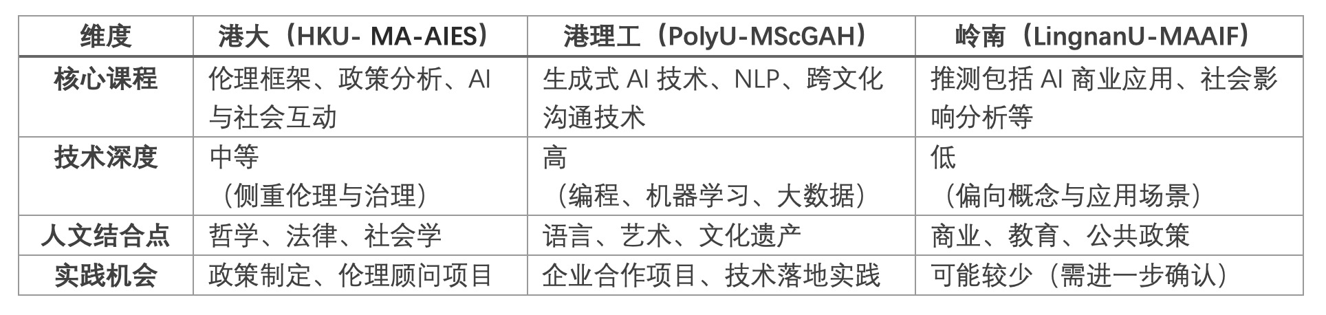 • 香港理工大学 理学硕士(生成式人工智能与人文科学)