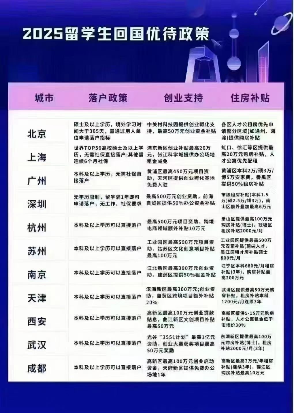 > 2025年留学生回国优待政策