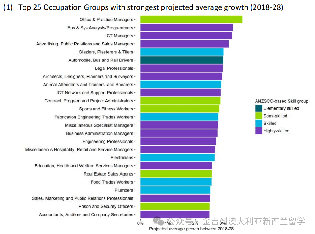 报告指出,未来十年:所有技能水平的就业人数都会增长 ,但其中 高技能职业增长最为强劲 。办公室与执业经理 群体增长最快,商业服务、建筑、旅游相关行业中也涌现大量 IT和其他专业职位 。