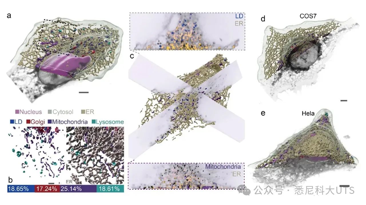 “ 目前常用的荧光显微镜等工具在分辨率方面有一定的局限性,难以清晰观察细胞内的微小结构,或追踪精密的细胞过程。” 悉尼科技大学生物医学材料与器件研究所所长,杰出教授金大勇表示,“传统成像方法可能会引起 光毒性 和光漂白现象—也就是因光照导致的细胞损伤。同时 因为受限于可使用的荧光颜色数量,它们在展示细胞内多个结构时也存在困难。”