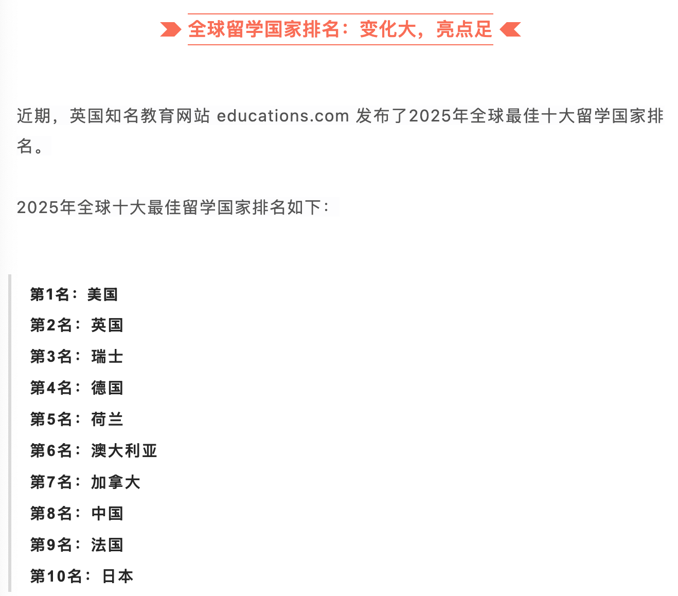 - 中国首次上榜:今年,中国首次跻身榜单,位居第八。这可能与港校的热度提升有关。同样吸引眼球的是,日本也新上榜,排在第十。