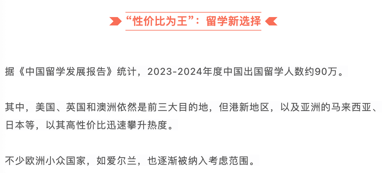 无论如何,我们正见证留学选择的多样化趋势——从英美留学的传统热潮,到港新地区的崛起,再到日本、马来西亚等亚洲国家的持续升温,全球留学格局愈发多元。