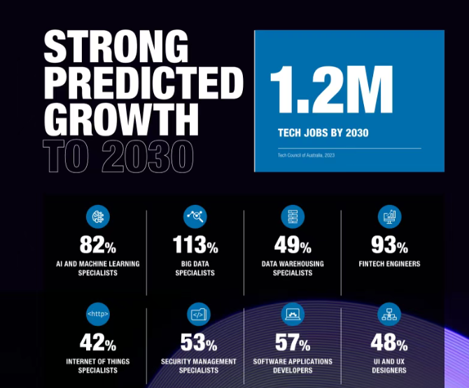 根据澳大利亚技术委员会2023年的预测,到2030年,澳大利亚的技术专业人才预计将达到120万,凸显了该领域的巨大潜力和发展前景。