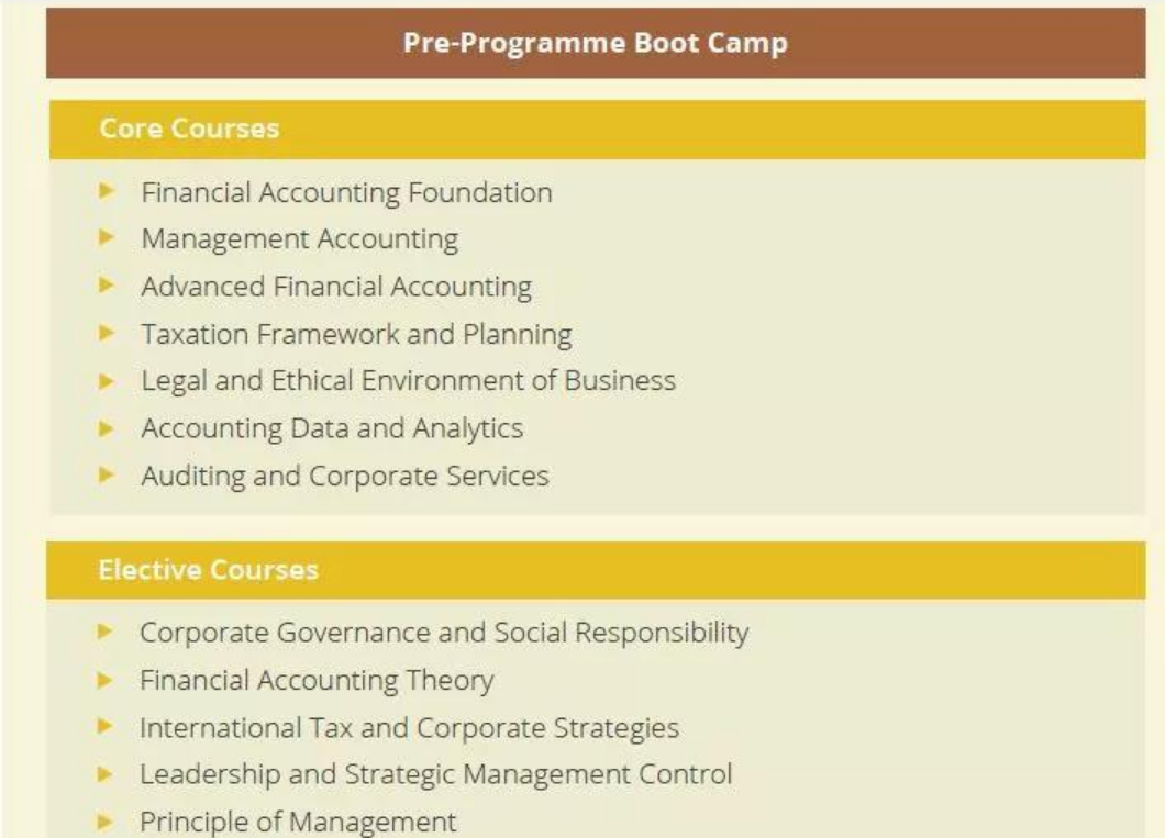 港大的会计硕士课程受 ACCA 认可。 完成某些特定课程后,港大会计硕士项目的毕业生可以获得一些课程的考试豁免,包括: